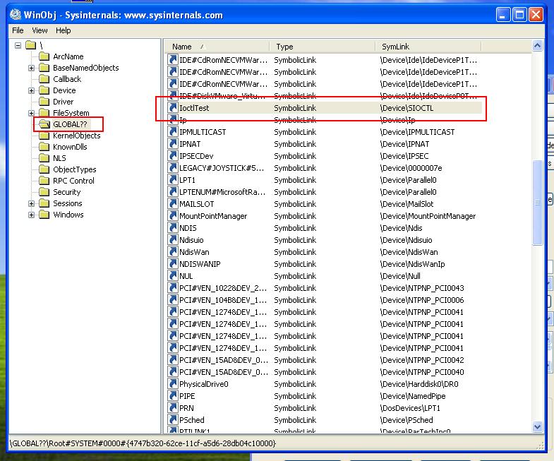 ابزاری به نام WinObj وجود دارد که Device Name و Symbolic Name های تعریف شده در سیستم را نمایش می دهد. مثلا در شکل زیر من بعد از اینکه درایور را با OSR Loader لود کردم اطلاعاتی که در شکل آمده اضافه شده اند.