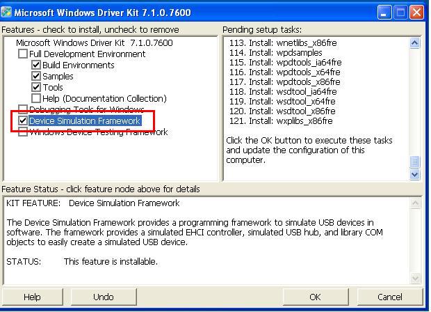 برای شبیه سازی دستگاه ها، DSF یکسری componennts بر پایه آبجکتهای COM می سازد . مانند Devices, Configurations, Interfaces, Endpoints, Descriptors و غیره. اگر قبلا firmware برای USB نوشته باشید می دانید منظورم از این عبارات چیست (اگر اطلاعات بیشتری در این مورد می خواهید می توانید مستنداتی که اینجا قرار گرفته را بخوانید.). شما همچنین می توانید componennts های خود را بنویسید و هر دستگاه USB ای را شبیه سازی کنید. همراه frameware یکسری سورس از نحوه درست کردن این قبیل دستگاه ها قرار گرفته که از این مسیر بسته WDK قابل دسترسی هستند.